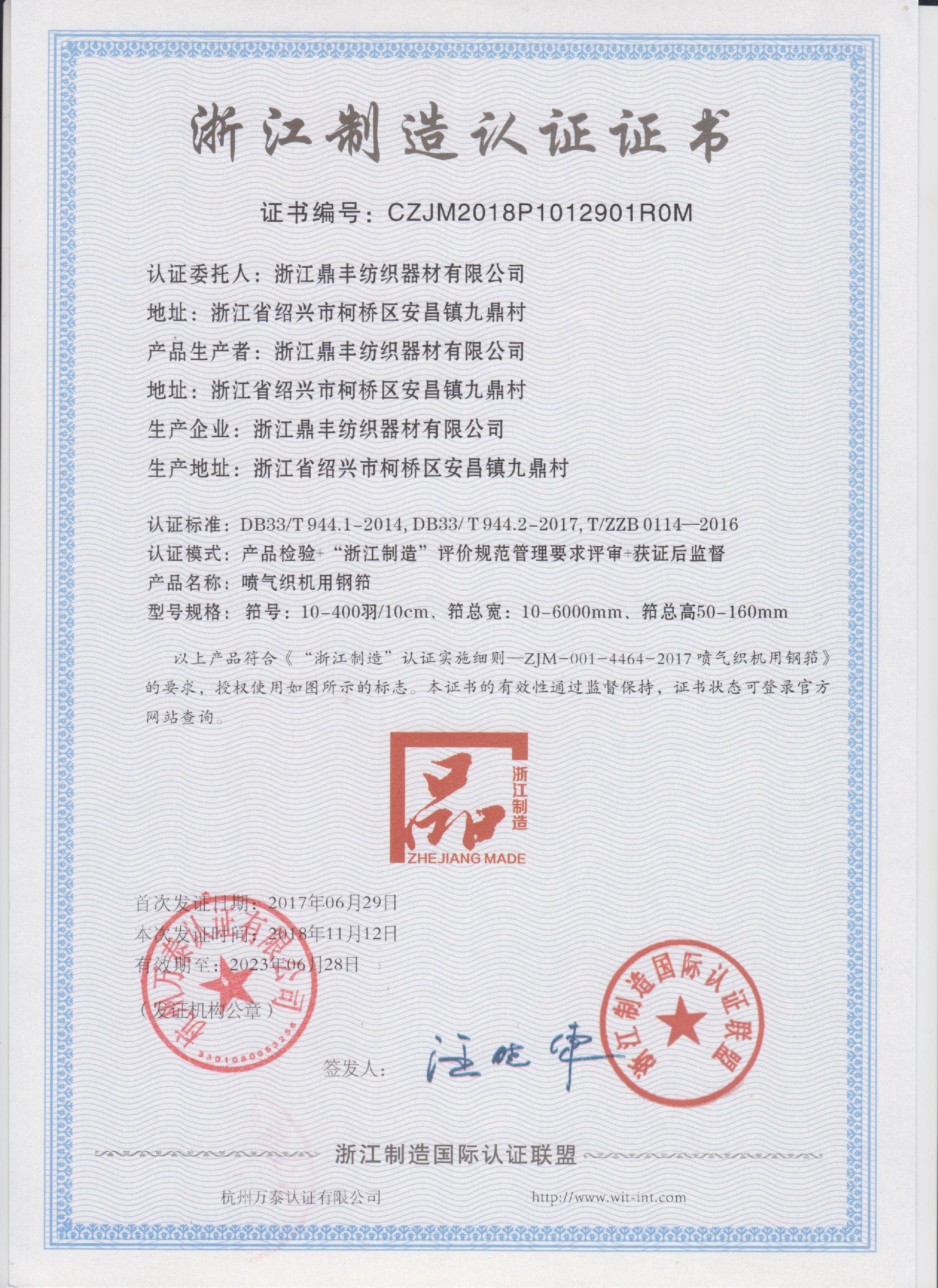 公司現(xiàn)有固定資產(chǎn)6000余萬(wàn)元,員工300余人,現(xiàn)具有年產(chǎn)噴氣異型筘12萬(wàn)米,劍桿筘32萬(wàn)米,噴水筘5萬(wàn)米,綜框20萬(wàn)片,鋼片綜2億片,停經(jīng)片1.5億片, 織軸1.2萬(wàn)套的生產(chǎn)能力。公司“越泉”商標(biāo)被評(píng)為“中國(guó)馳名商標(biāo)”。公司通過(guò)ISO9001 :2015國(guó)際質(zhì)量體系認(rèn)證,ISO14001:2015國(guó)際環(huán)境管理體系認(rèn)證,ISO45001:2018國(guó)際職業(yè)健康安全管理體系認(rèn)證,噴氣織機(jī)用鋼筘和織機(jī)用鋁合金綜框獲得“浙江制造”品牌認(rèn)證,公司擁有自營(yíng)進(jìn)出口權(quán),產(chǎn)品暢銷(xiāo)全國(guó)并遠(yuǎn)銷(xiāo)印度、巴基斯坦、土耳其、埃及、哥倫比亞、意大利等國(guó)家和地區(qū)。